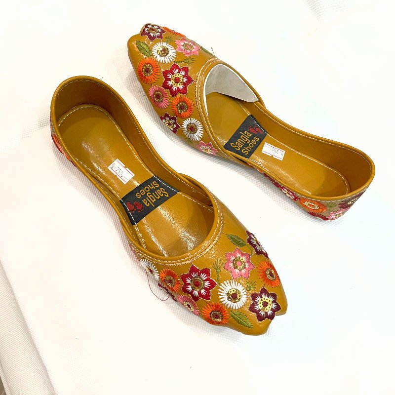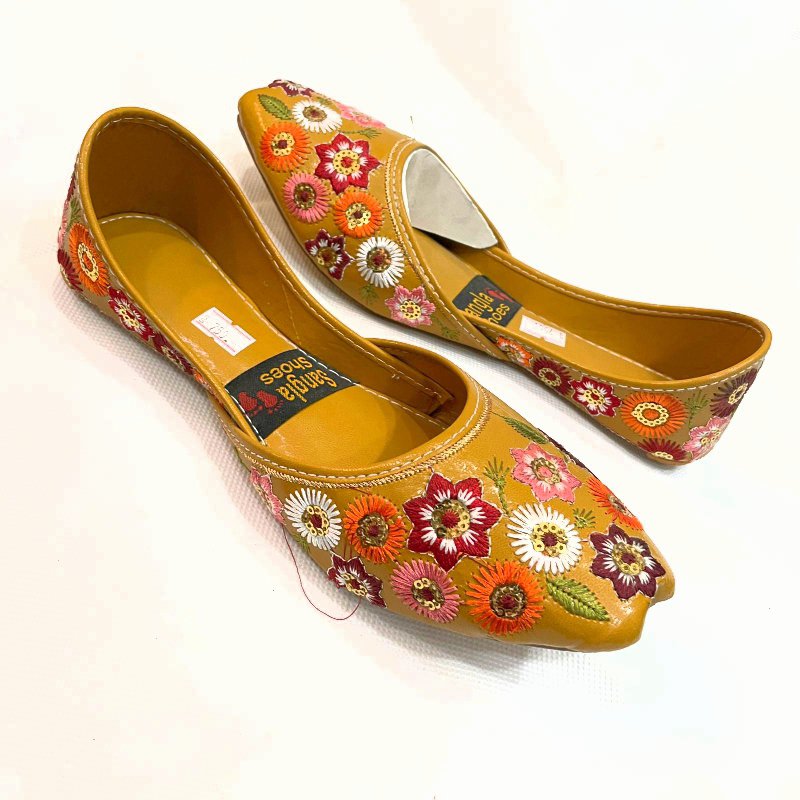 American Women Embroidery Khussa in Mustard & Navy